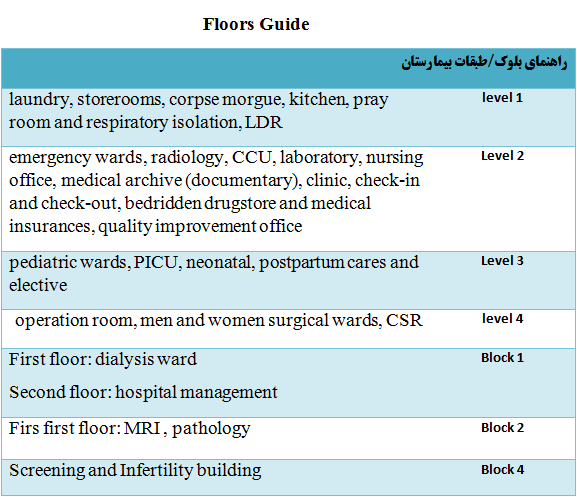 Bu-Ali hospital has been constructed on area of 5 hectares by ministry of roads and urban developments in 2005 (1384). The total built up area of the buildings is 8000 square meter. Also, there is one main entrance. According to the organization chart, the number of hospital beds is 134.