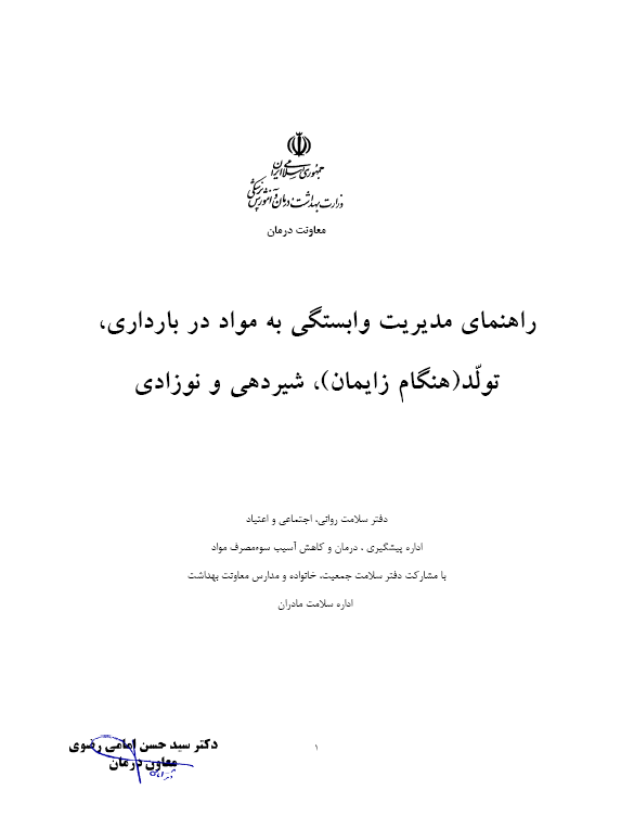 راهنمای مدیریت وابستگی به مواد در بارداری، تولد، شیردهی و نوزادی