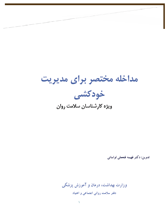 بسته آموزشی کارشناسان مراقب سلامت و بهورزان در خصوص پیشگیری از خودکشی